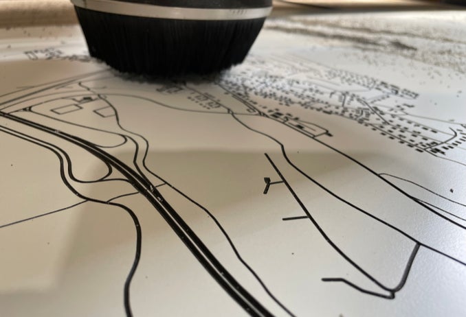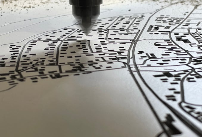 Wir fräsen Ihren Kartenausschnitt in eine HPL Platte.